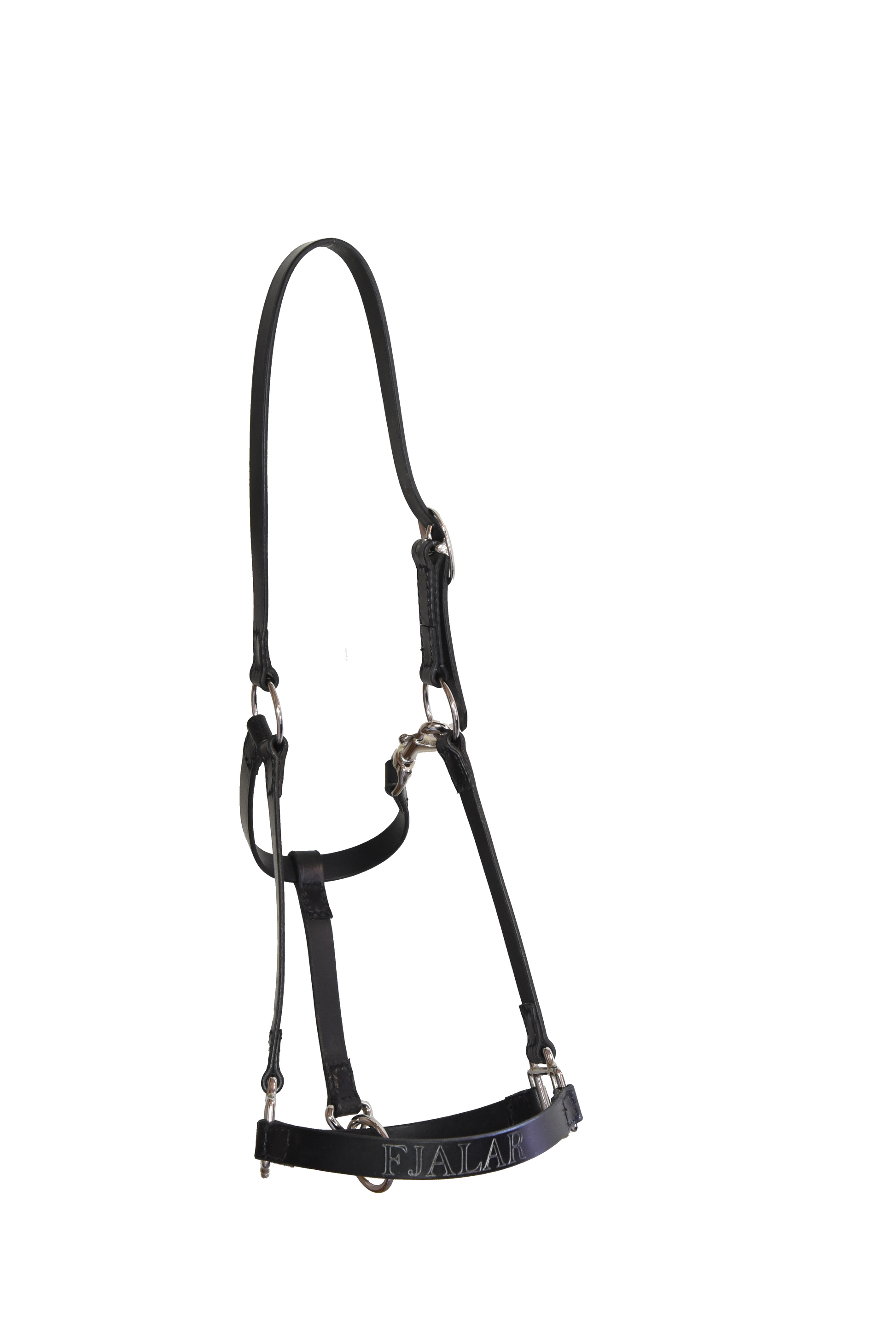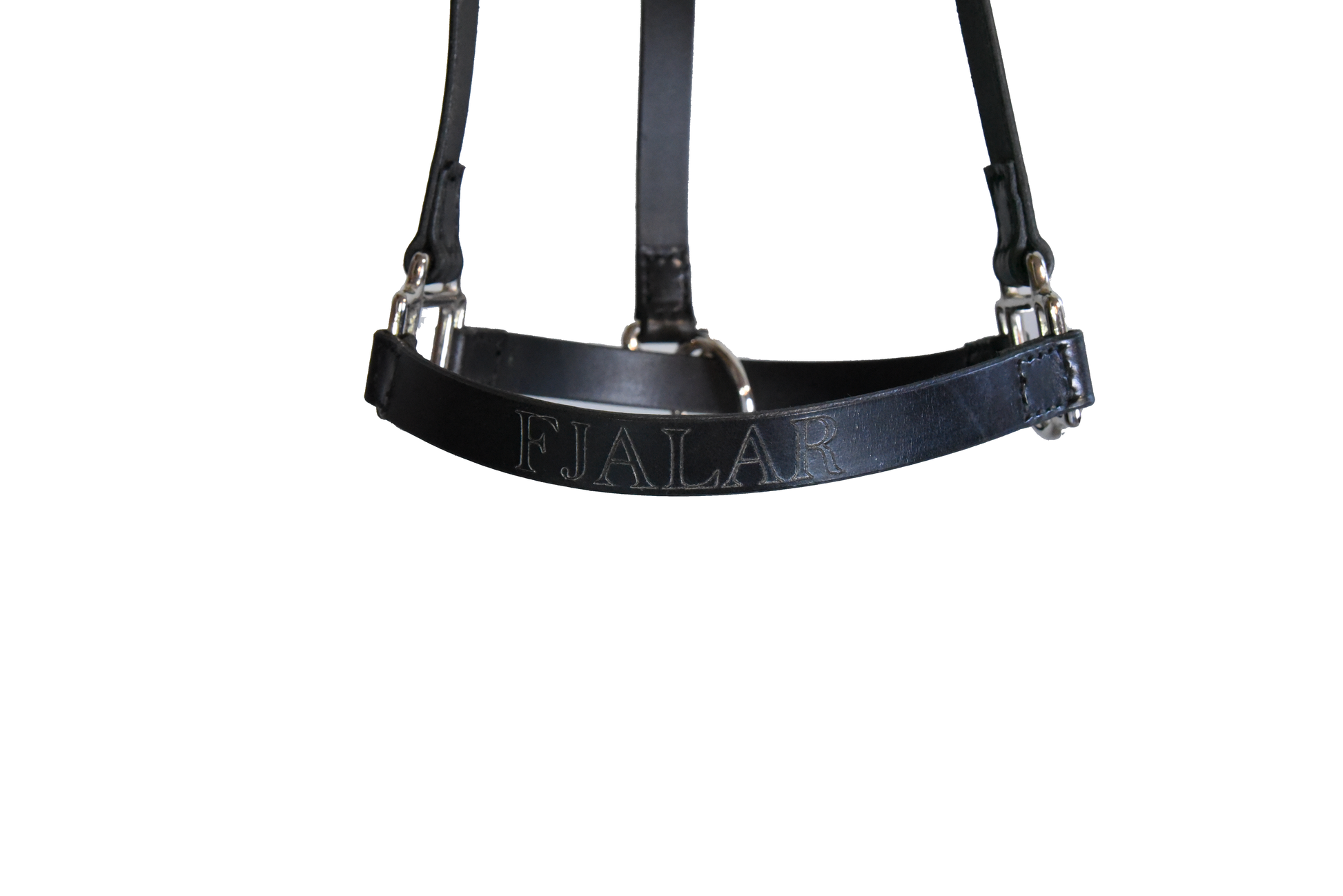 Lædergrime til islandske heste. Grimen er med valgfrit navn graveret i næsestykket. Navnet skrivet i kommentarfeltet til ordren.
